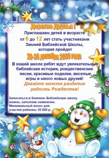 Началась запись в Зимнюю Библейскую Школу церкви ЕХБ Гомеля!