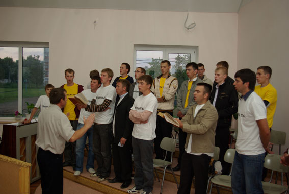 На фестивале музыки и слова в г. Костюковичи было две горчинки…Полные решимости продолжать дело благовестия и духовного просвещения народа, братья и сестры в Костюковичах решили повторить фестиваль, уже под названием «Выход есть», в начале июня 2009-го года. Но разрешение на установку палатки в общественном месте власти не дали, поэтому решено было проводить служения около Дома молитвы. Мотивирован был отказ на проведение фестиваля тем, что в городе большинство людей причисляют себя к православному вероисповеданию и что после предыдущего фестиваля было много жалоб и нареканий. Однако в прошлый раз было проведено анкетирование слушателей, и фактически все они в один голос одобряли фестиваль и желали, чтобы он проводился почаще. Забегая наперед, нужно сообщить, что и в этот раз жители Костюкович в анкетах просили проводить подобные мероприятия почаще. Итак, 5 июня сюда прибыла евангелизационная команда из Кобрина, а потом - из г. Клетня Брянской области и Могилева. Братья и сестры приняли решение начать служение на улице, хотя до 17.30 шел дождь. Молодежь из Клетни отправилась в город для раздачи приглашений. Двое подростков наткнулись на главного градоначальника Костюкович и, нимало не сомневаясь, вручили ему приглашение. Он вызвал милицию. В результате двое подростков оказались в милицейском участке, а заместитель начальника милиции на автомобиле «Жигули» подъехал к зданию Дома молитвы. Братья попросили его не позориться, а отпустить ребят, потому что никаких противоправных действий не было совершено и они не преступники. Пресвитер Владимир Никитенко поехал в милицейский участок, и там между ним и сотрудниками милиции, в том числе и с зам. начальника милиции, прошла хорошая беседа. Ребят отпустили, а в это время уже начался фестиваль. Основную программу вели братья из Клетни во главе с ответственным за благовестие в Брянской области Николаем Васильевичем. Несколько произведений прозвучало и из уст музыкальной группы «Свирель Давида» из Могилева. Но было холодно, поэтому Василий Трубчик предложил для дальнейшего служения перейти в Дом молитвы, что и было сделано. Там прозвучала проповедь на тему «Ищите Бога» и пение мужской группы молодых братьев. На призыв к покаянию никто из присутствующих не откликнулся. На второй день значительно потеплело. Дождя вечером не было, так что погода благоприятствовала проведению служения, которое и началось в 18 часов с участием братьев и сестер из г. Клинцы Брянской области, а также дуэта Вениамина и Сергея из г. Кобрина и музыкальной группы «Вифлеем» из г. Минска. Проповедь сказал Евгений Воронин, изложив присутствующим значение жертвоприношения в иудейском храме, проведя параллель с жертвой Сына Божьего Иисуса Христа во искупление наших грехов. Присутствующим были розданы журналы "Крынiца жыцця" и брошюры «Кто есть Бог?». Многие заполнили анкеты, и почти в каждой повторялось желание, чтобы подобные фестивали проводились почаще. А 7 июня, в день Троицы, гости были как в одной, так и в другой церкви ЕХБ г. Костюковичи. Леонид Мельянец со своей группой «Вифлеем» проводил утреннее служение в церкви, которая располагается около железнодорожной станции, а Василий Трубчик с группой «Вечный свет» был в церкви «Надежда». В 16 часов прошло заключительное служение в Доме молитвы церкви, которая распо