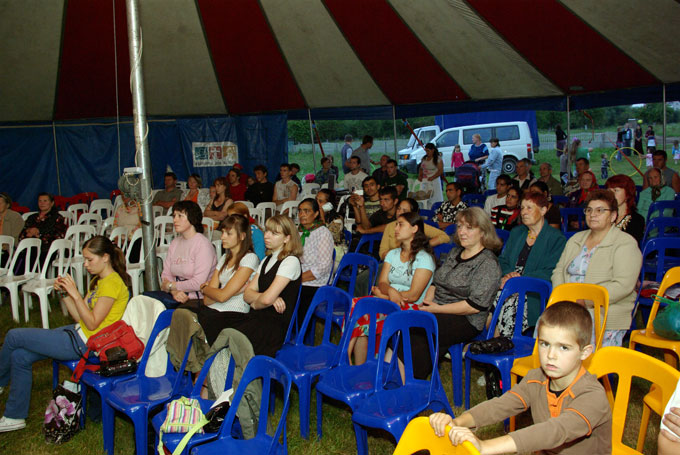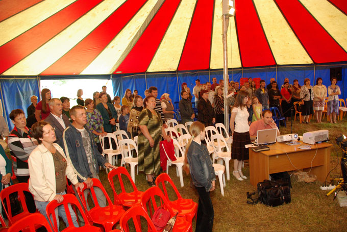 Гроза над храм-палаткой![]() Природа преподносила свои сюрпризы. В первый день, как раз во время того как люди должны были прийти на фестиваль, разразился ливень. Все в Божьих руках, и ответа на вопрос, почему так случилось, никто не знает. А в пятницу, во время проведения фестиваля, была гроза. Братья и сестры молились, чтобы Господь сохранил всех присутствующих на служении. Благо заключалось в том, что никто не выходил из палатки. А в это время Минск затопило… Господь сохранил всех присутствующих, а в храм-палатке тем временем звучало предупреждающее Слово Божье, что на все нечестие открывается гнев Божий. Гроза прошла, а фестиваль продолжался. Людей было негусто, но праздник из-за этого не пострадал. Для церкви, в которой всего девять членов, видеть в палатке более сотни человек – это большое благословение. Не зря пресвитер церкви Василий Шеметов за обеденным столом выразил желание провести подобное мероприятие и в следующем году. Кстати, жена Василия Ивановича Наталья, вместе с другими сестрами, все эти дни усердно работала на кухне, готовя с великой любовью и искусством обеды и ужины. Участники фестиваля с радостью посещали Дом молитвы, где и предлагалось им кушанье. Большой вклад в проведение фестиваля внесли братья и сестры из Бобруйска во главе с Сергеем Кликом. Они совершали душепопечительскую работу и приглашали людей на служения. А семья Донских из Гомеля со своей командой каждый день проводили служения для детей, что тоже является большим вкладом в построение церкви Божьей в Корме. В фестивале приняли участие братья и сестры из ближайших и тоже небольших церквей г. Чечерска и п. Ильич. Многие присутствующие оставили свои пожелания и впечатления о фестивале. Некоторые из них приведены ниже: