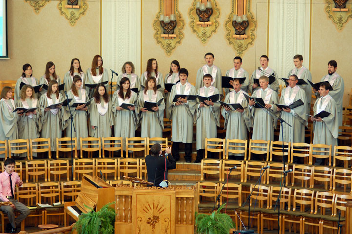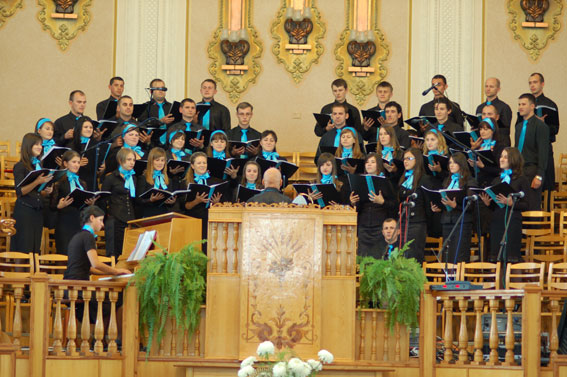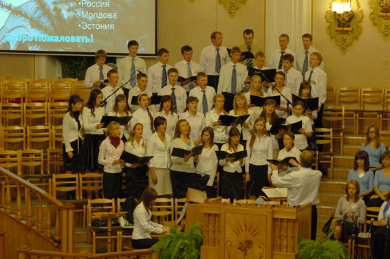 IV праздник молодёжных хоров в Кобрине 9 - 11 октября 2009 года Ещё задолго до праздника соответствующее настроение овладевало теми, кто имел желание и собирался в Кобрин. И насколько был бодрым наш дух, когда мы увидели такую огромную семью хористов. К нам приехали братья и сёстры, чтобы прославить Господа, рассказать о своём коллективе, церкви и жизни в их местности. В пятницу открывал праздник IV хор г. Кобрина и хор церкви «Рождество» г. Бреста. После их программы сводная спевка собрала большое количество хористов, которые с трудом поместились на нашем хоровом балконе. С первых аккордов было видно, что братья и сёстры подготовились и знали программу сводного хора. Без особого трепета невозможно было слушать это пение. Несколько сотен молодых людей пели настолько слаженно и красиво, как будто занимались уже давно, хотя сводная спевка только началась. И в воскресенье, на служениях утром и вечером, сводный хор звучал весьма величественно и торжественно; слава Богу воздавалась от всей души. В субботу каждый коллектив представил свою программу, рассказал о своём служении, слушал других участников. Хотелось, чтобы время остановилось, не уходило, унося эти чудные звуки. Хоры так мощно и дружно пели: видимо, сам Господь давал всем хористам особые силы. И всё это для славы Его. День прошёл. Кто-то обменивался репертуаром, кто-то общался, кто-то от избытка услышанного просто радовался и благодарил Господа. После программы всех коллективов регенты поделились впечатлениями и пожеланиями. На сводную спевку хористы пришли уставшие, но от пения в таком большом хоре настроение появлялось с каждой минутой, и хор зазвучал. Зазвучал во славу Того, во имя Которого мы все собрались! Воскресенье было заключительным днём нашего праздника. В служении просто великолепно пел хор, музыкальные исполнители и солисты радовали Господа и людей прекрасным пением. Грустно было, что праздник заканчивался, но прекрасные аккорды звучат в нашем сердце до сих пор. После служения молодёжь опять долго прощалась, ловила последние мгновения общения. Слёзы на глазах были свидетельством того, что собранные вместе христиане провели данное Богом время благословенно. С Богом, друзья!!! Верю и надеюсь, что Господь подарит нам ещё встречи на земле, и лишь только для того, чтобы, собравшись вместе, прославить Того, Кто нам всё это дал!!! Всегда ваш, Николай Доропей |